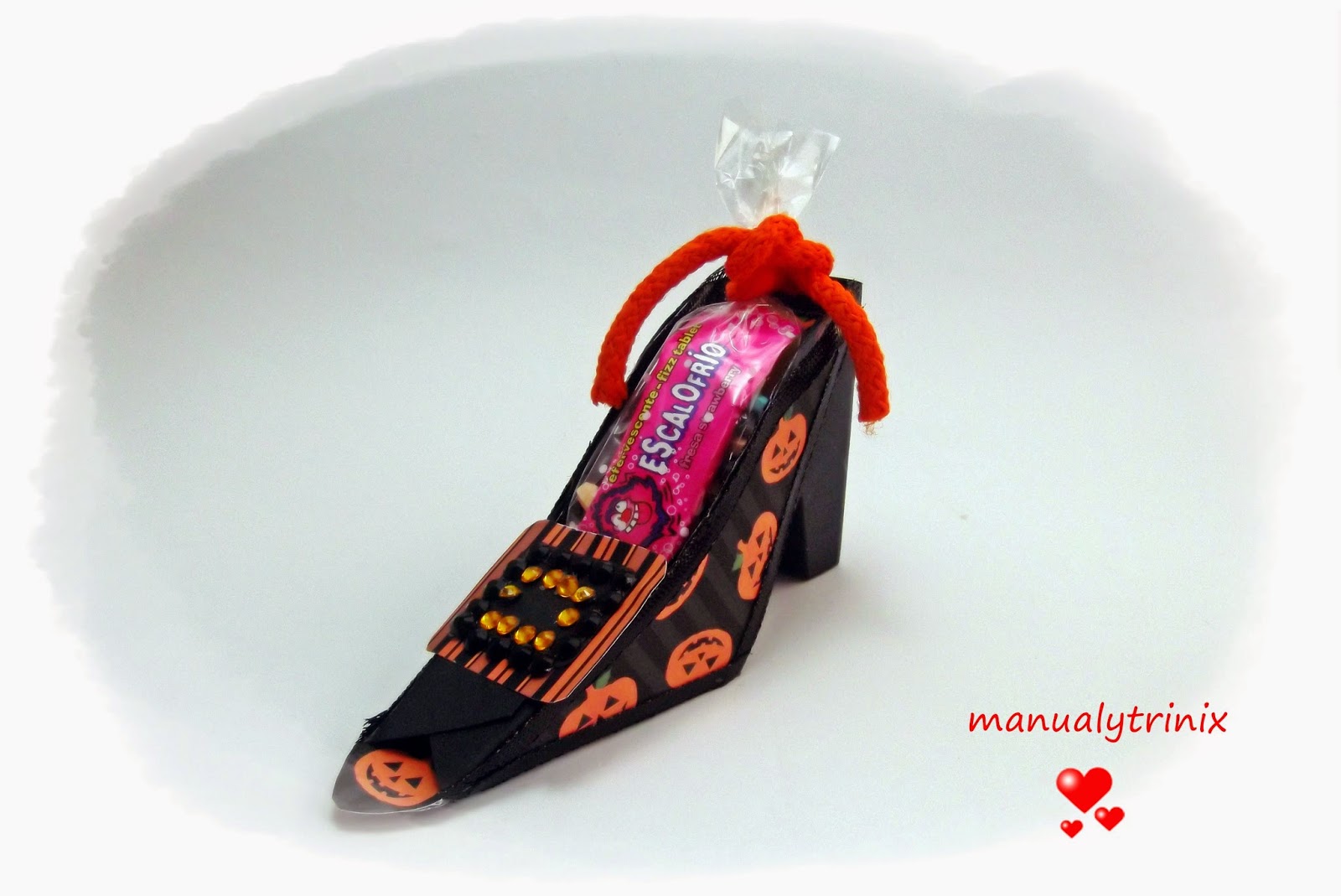 Esta semana seguimos con halloween, y en este post os muestro este zapato y este sombrero de bruja convertidos en graciosos dulceros . (Pincha en la imagen para ampliar).